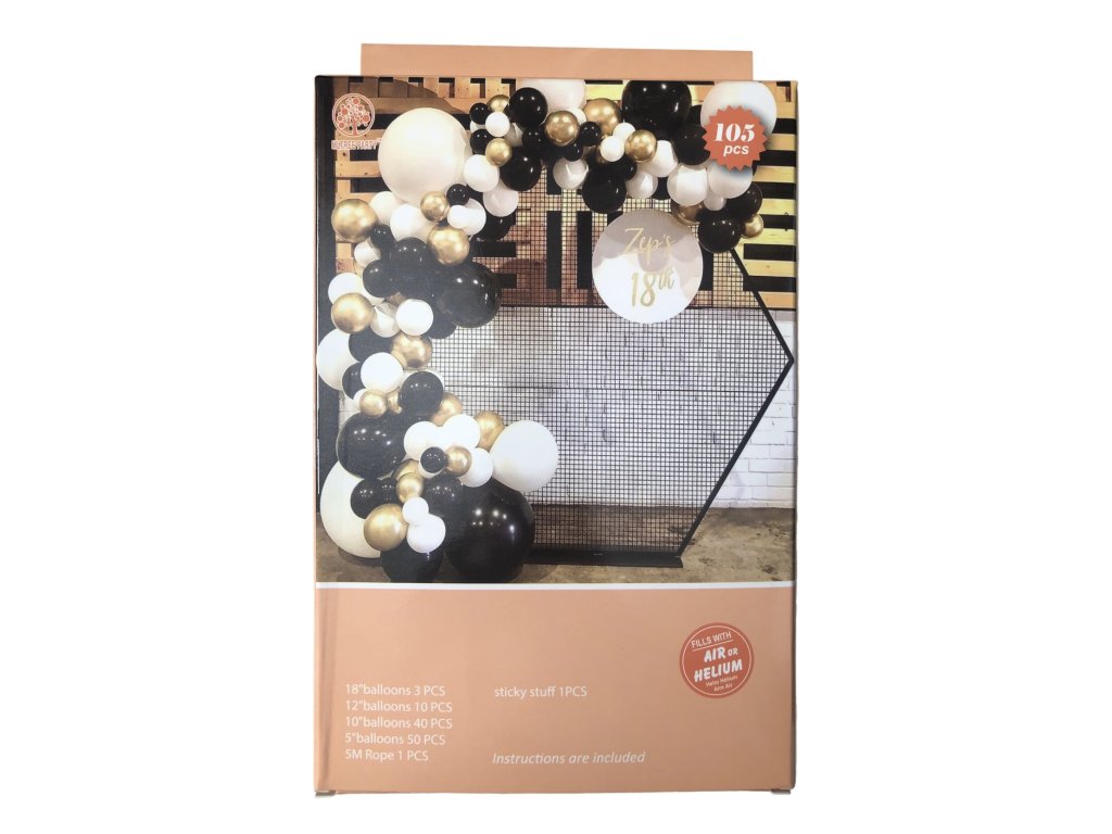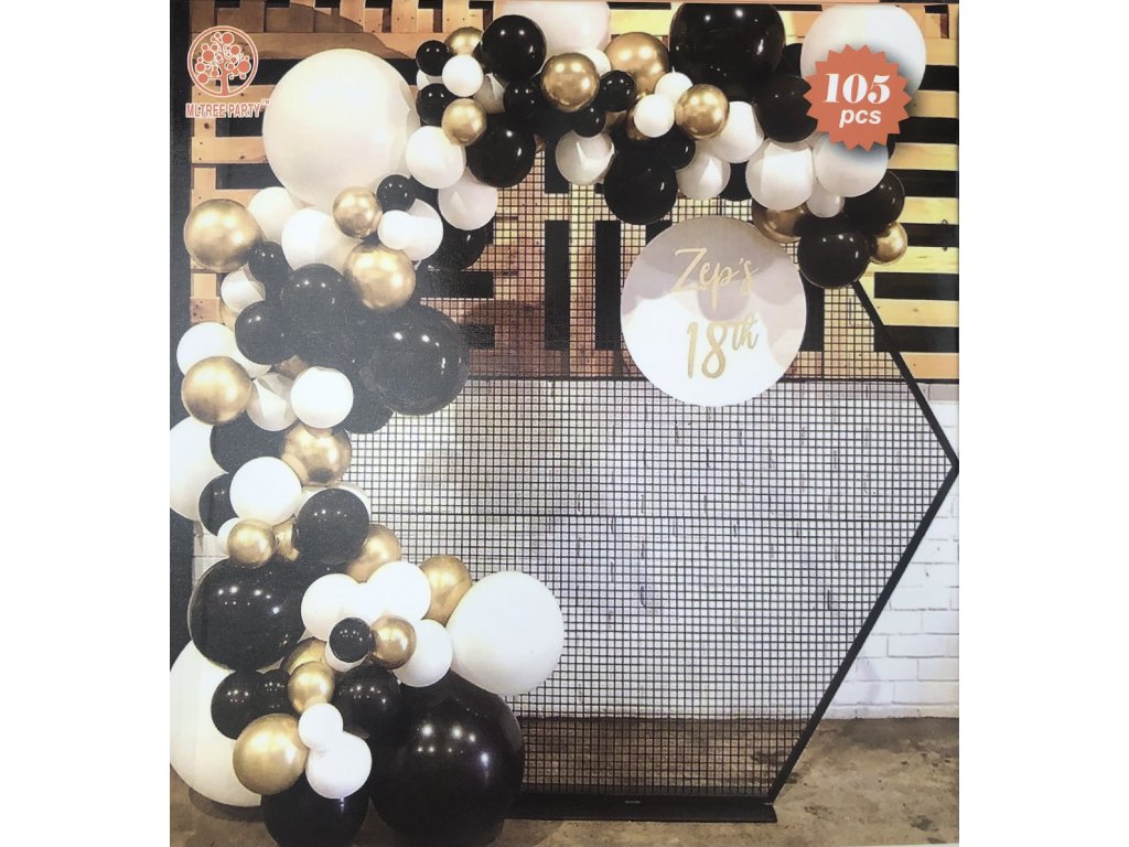 Párty balóny čierne, biele a zlaté 105 ks Girlanda