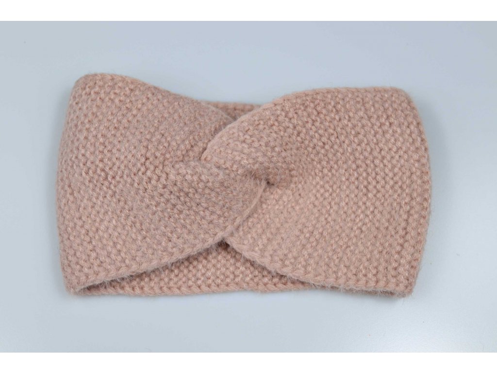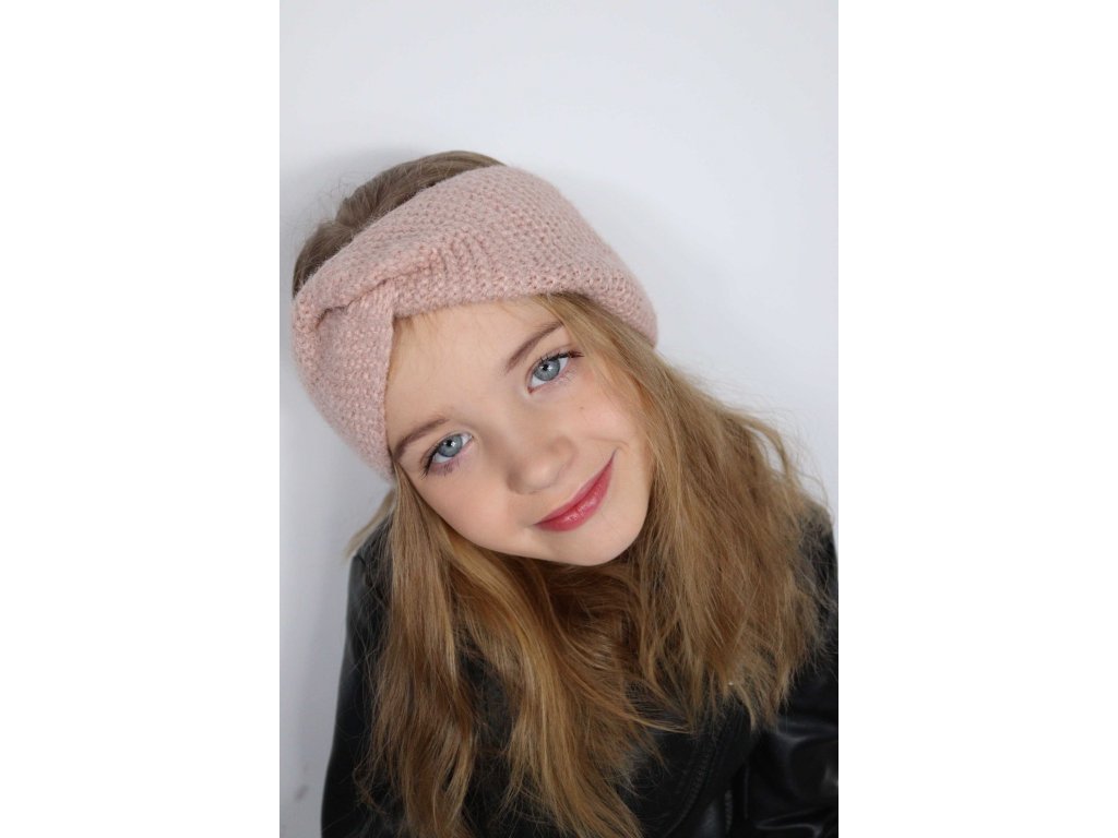 Pletená čelenka s prekrížením, vhodná pre jesenno - zimný outfit.
