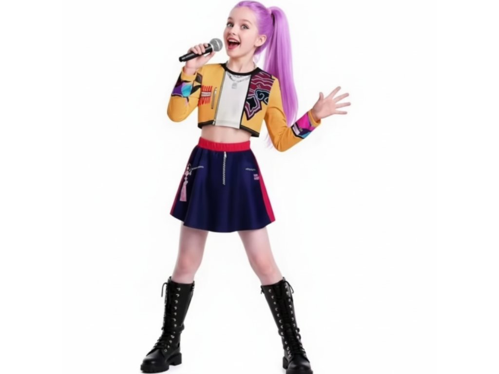 Vstúp do sveta K-pop Demon Hunters s kostýmom inšpirovaným ikonickou postavou Rumi. Tento outfit spája futuristický dizajn s tradičnými prvkami bojovníčky, čím vytvára nezabudnuteľný look pre každého fanúšika.