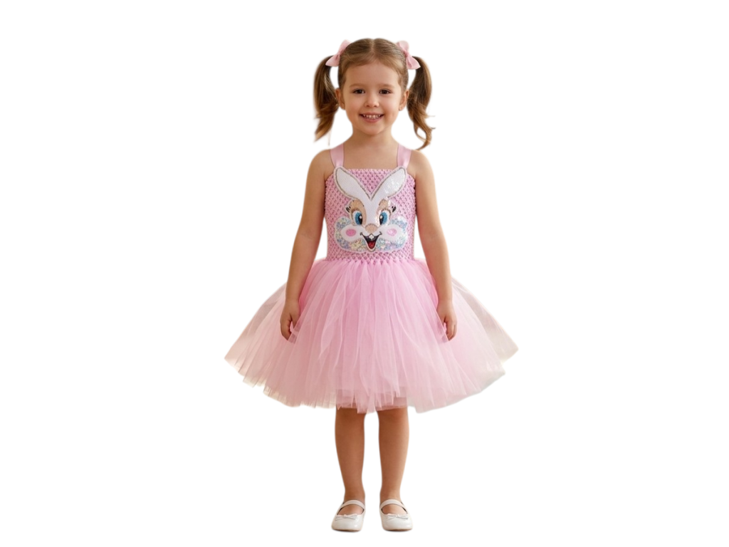 V balení sú farebné šaty s tylovou sukňou a čelenkou s uškami.