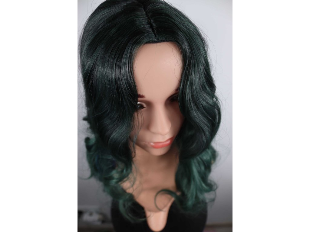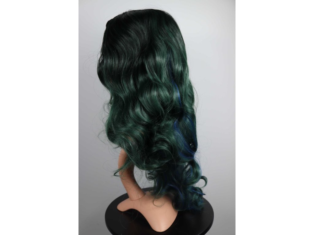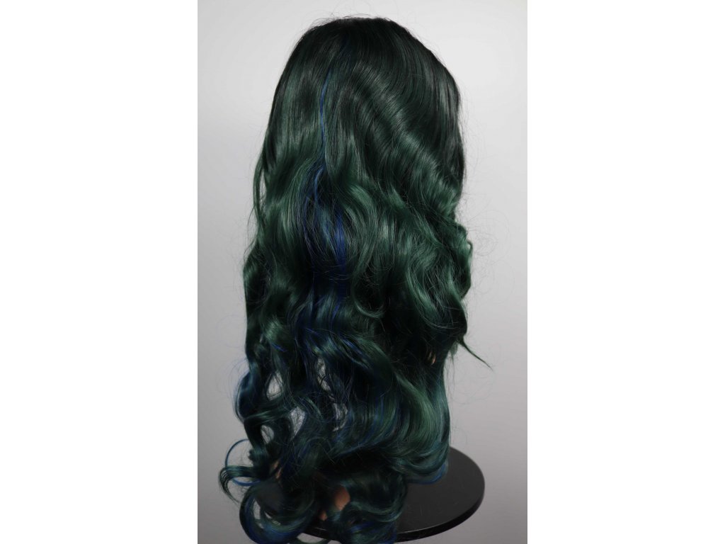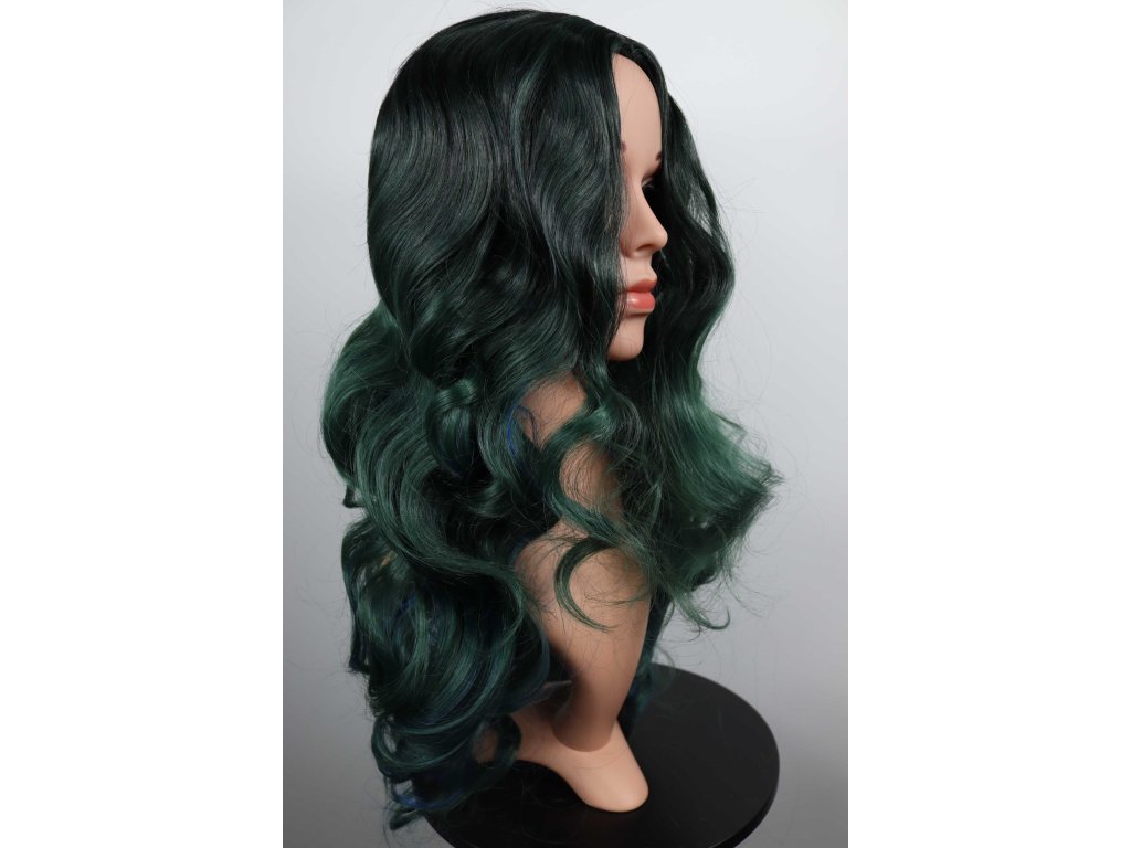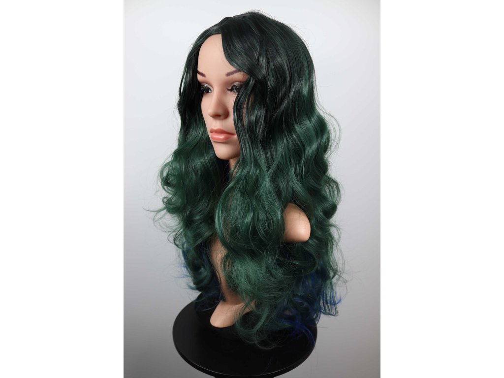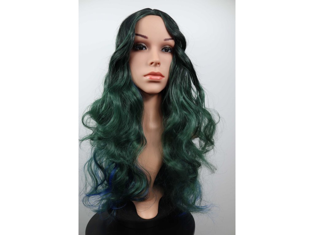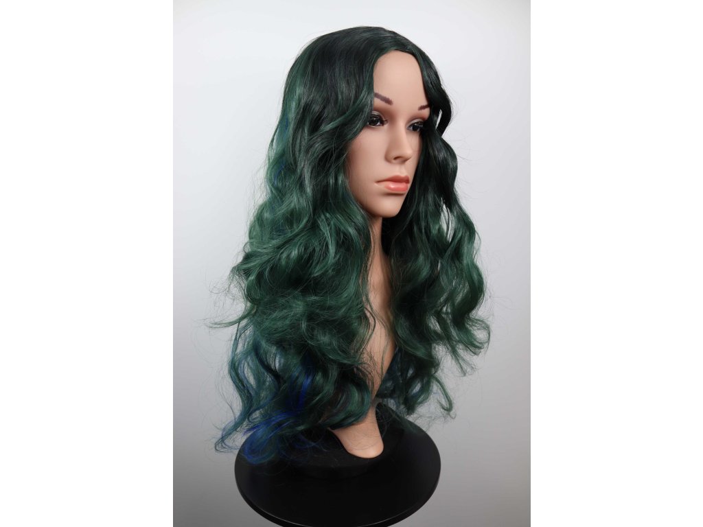 Dakota - dlhá zelená vlnitá parochňa s modrým melírom