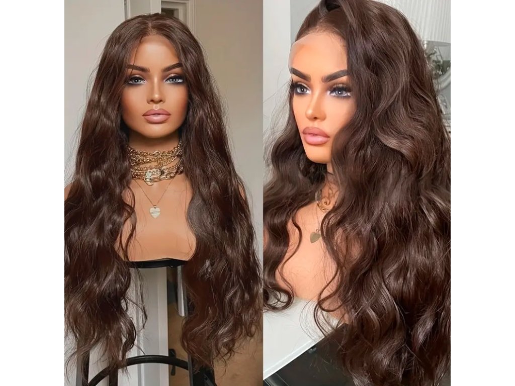 Dedra - dlhá hnedá vlnitá lace front parochňa