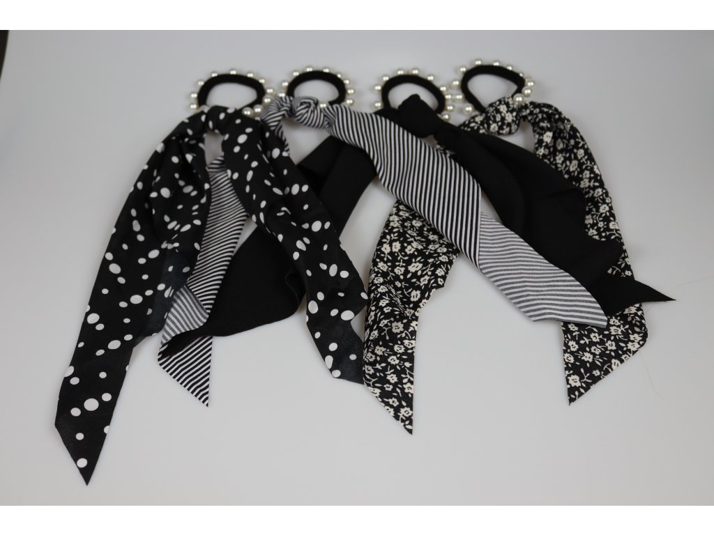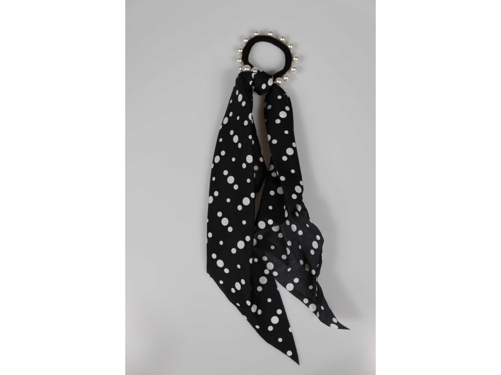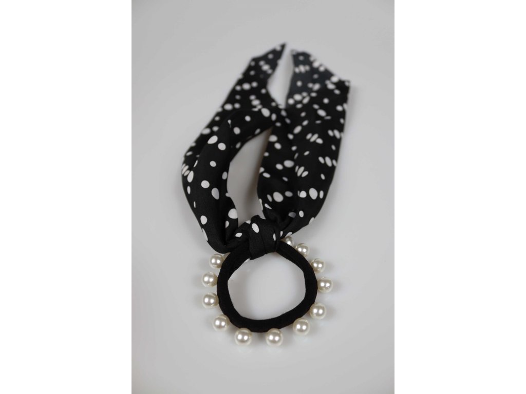 Gumička do vlasov s perlami a šatkou čierna s guličkami
