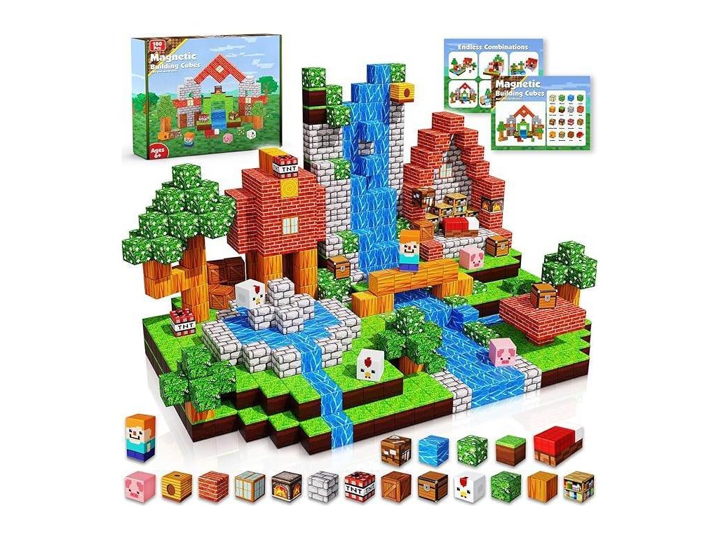 🧱 Magnetická stavebnica – Minecraft štýl dedinka s vodopádom (100+ ks)