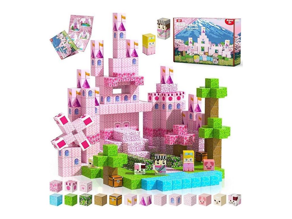 Magnetická stavebnica kocky – Ružový rozprávkový zámok 163ks