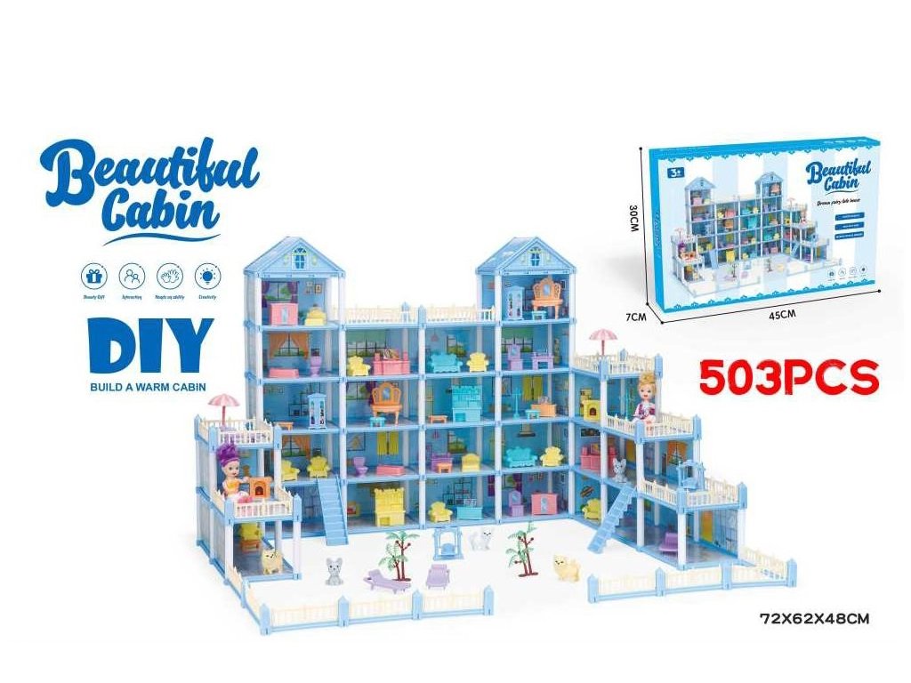 Veľký DIY modrý domček pre bábiky (503 ks)