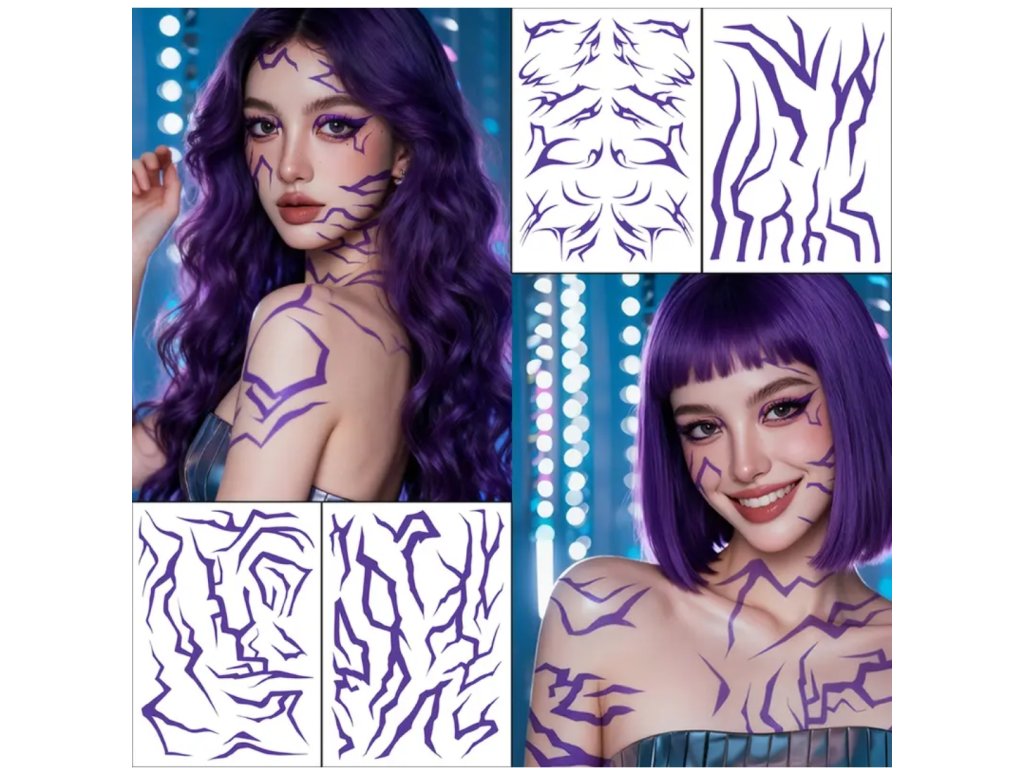 Vzhľad a Výdrž: Tetovania držia dlho a pevne, pričom sú odolné voči potu a vode, ideálne na koncerty, karnevale alebo každodenné nosenie!