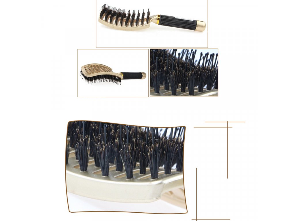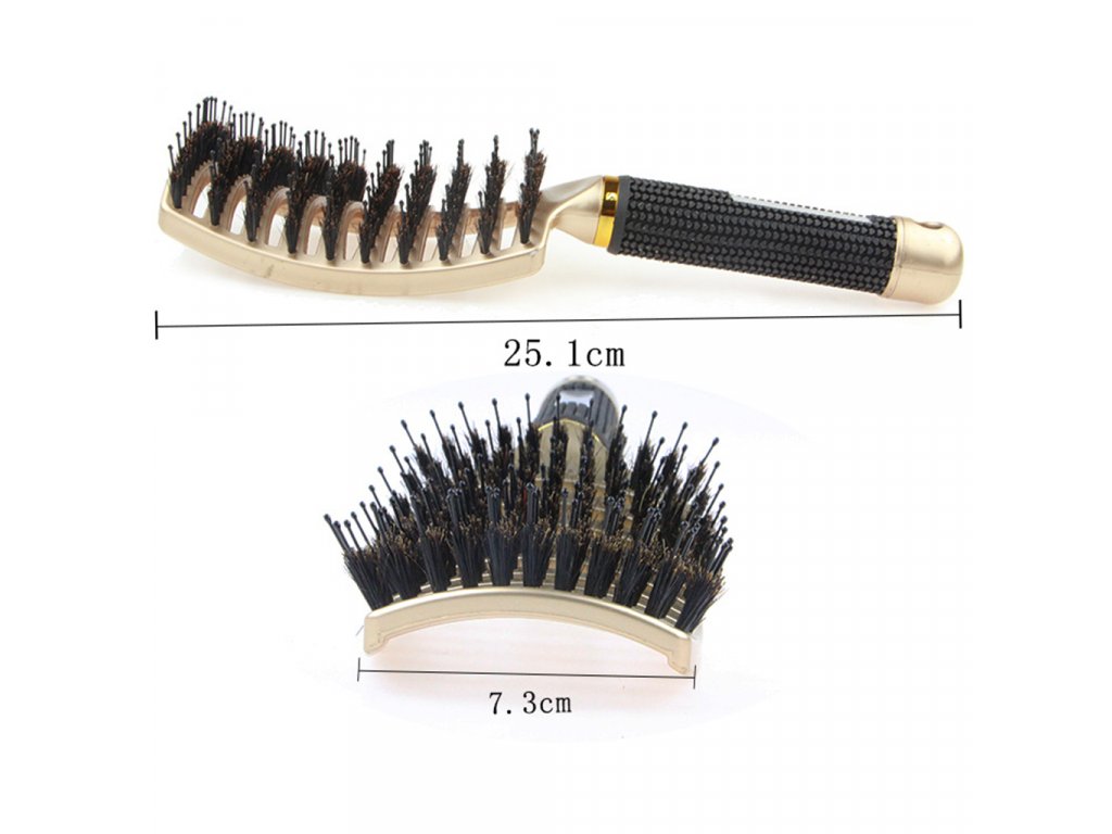 Veľká plocha rozčesávacej kefy z kvalitných štetín kombinovaných s nylonovými, ktoré sú zakončené guličkami, vďaka ktorým ideálne a jednoducho rozčeše aj zamotané vlasy.