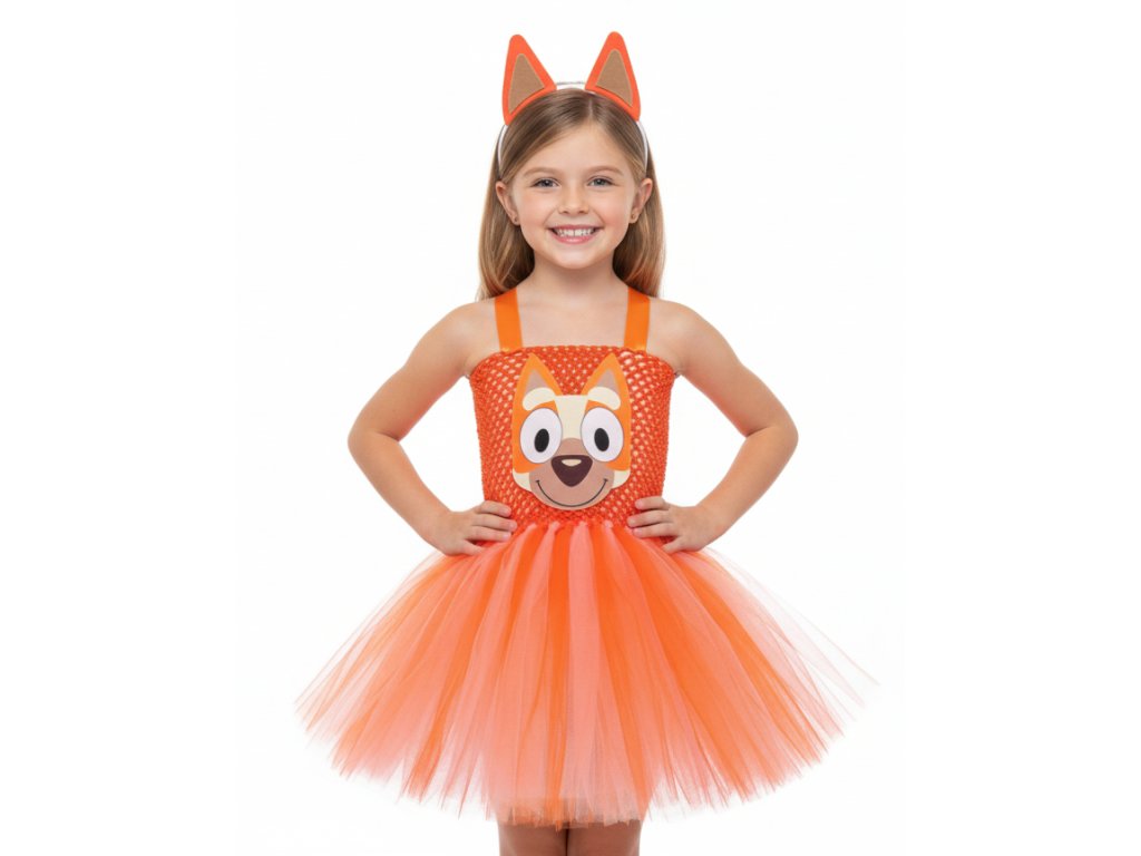 Jedinečný dizajn: Kostým má oranžovú farbu, ktorá je pre Bingo typická, a dopĺňajú ho biele a hnedé prvky, ktoré mu dodávajú autentický vzhľad. Súčasťou kostýmu je kapucňa s tvárou Bingo, ktorá je detailne prepracovaná.