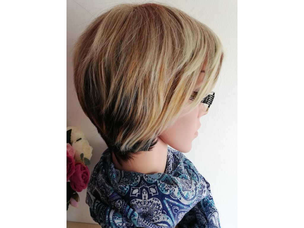 Hannah - krátka melirovaná blond parochňa