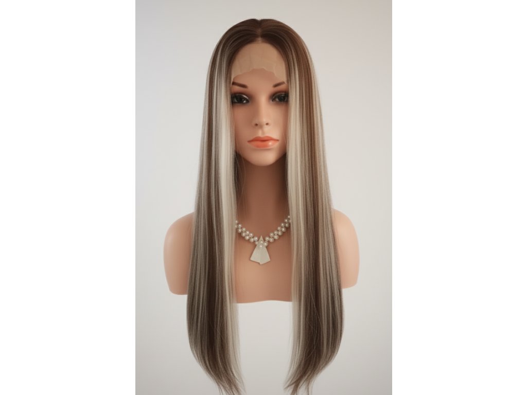 Brigitte - dlhá lace front melirovaná blond - hnedá parochňa