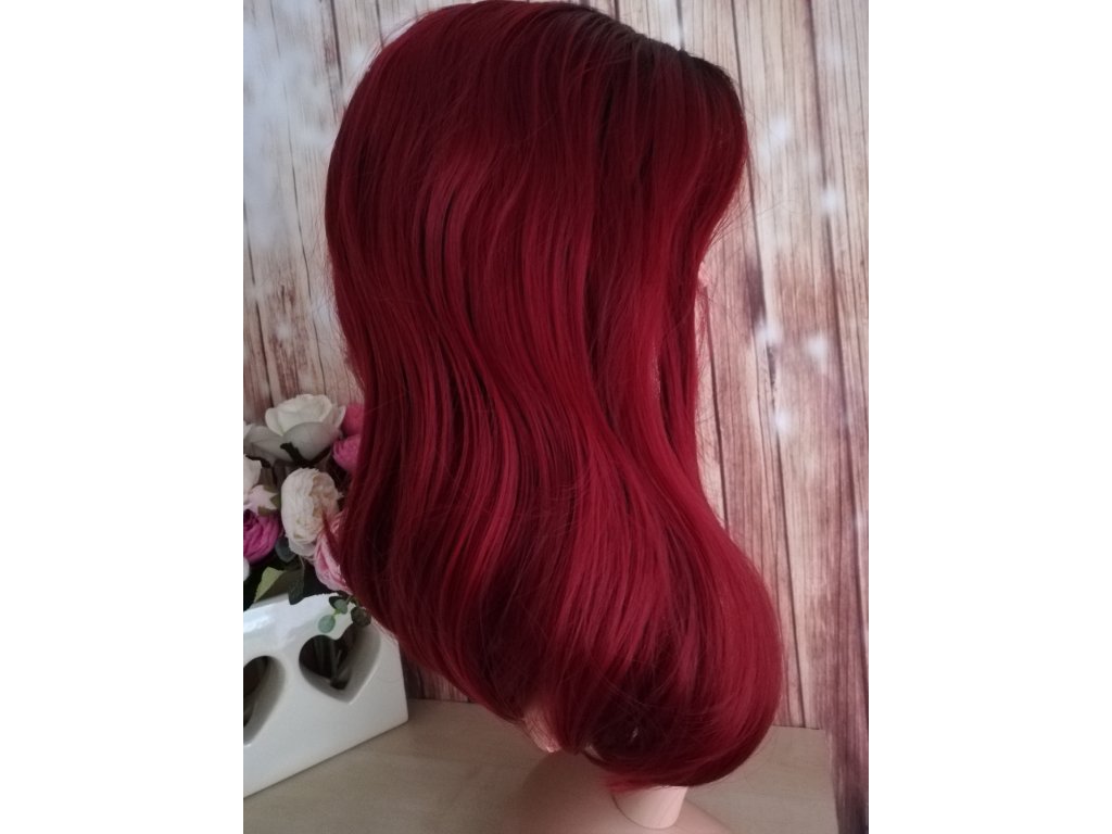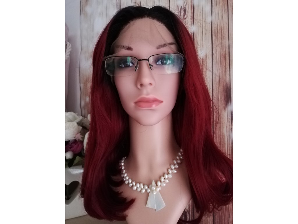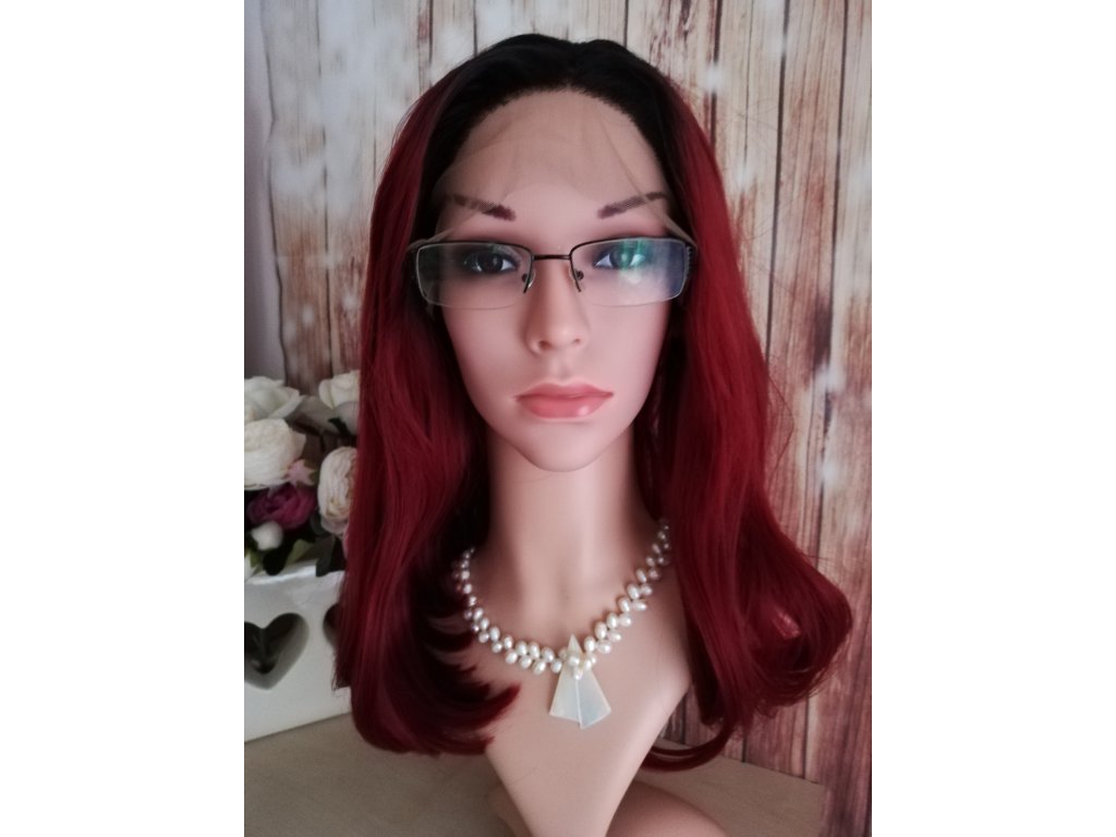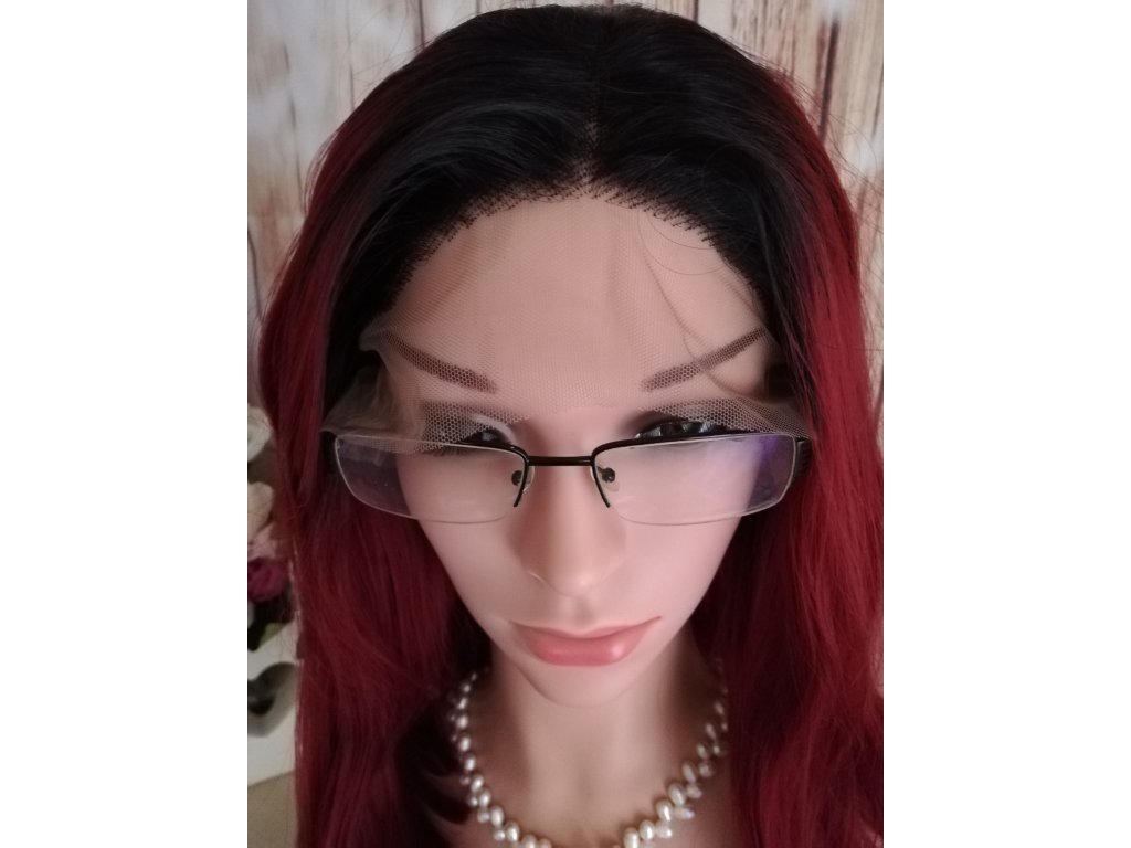 Susanne - lace front - polodlhá ombre červená bordo - čierna parochňa