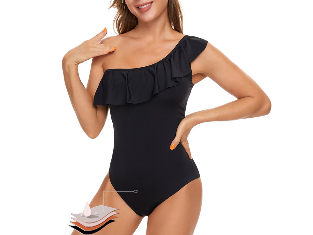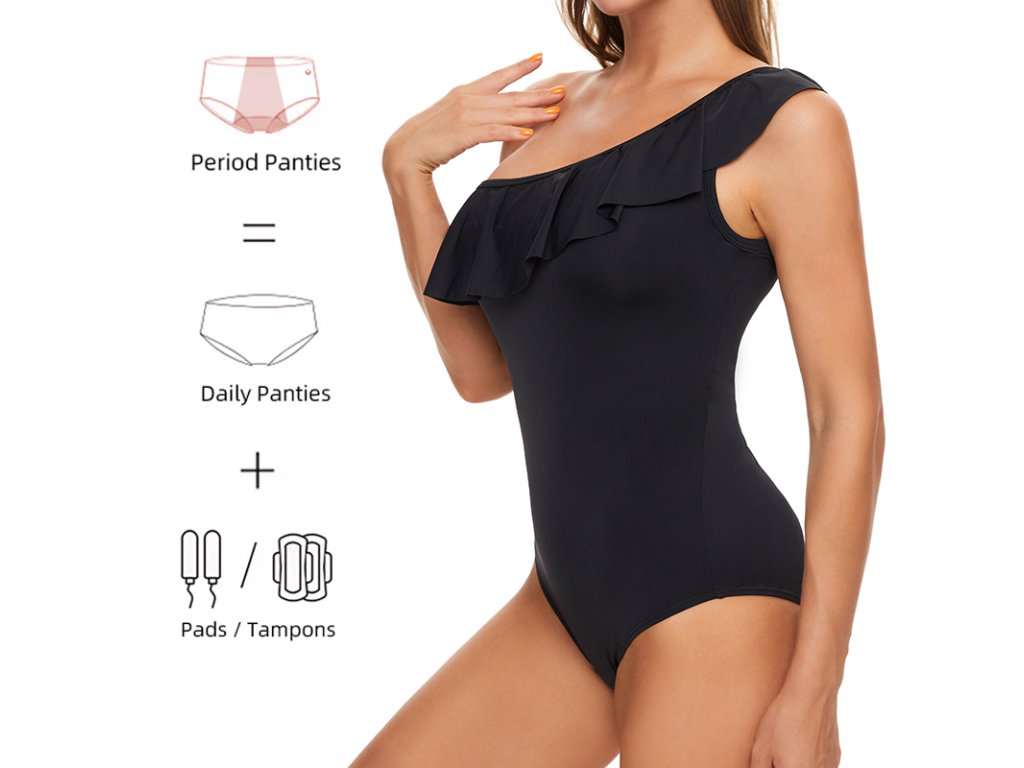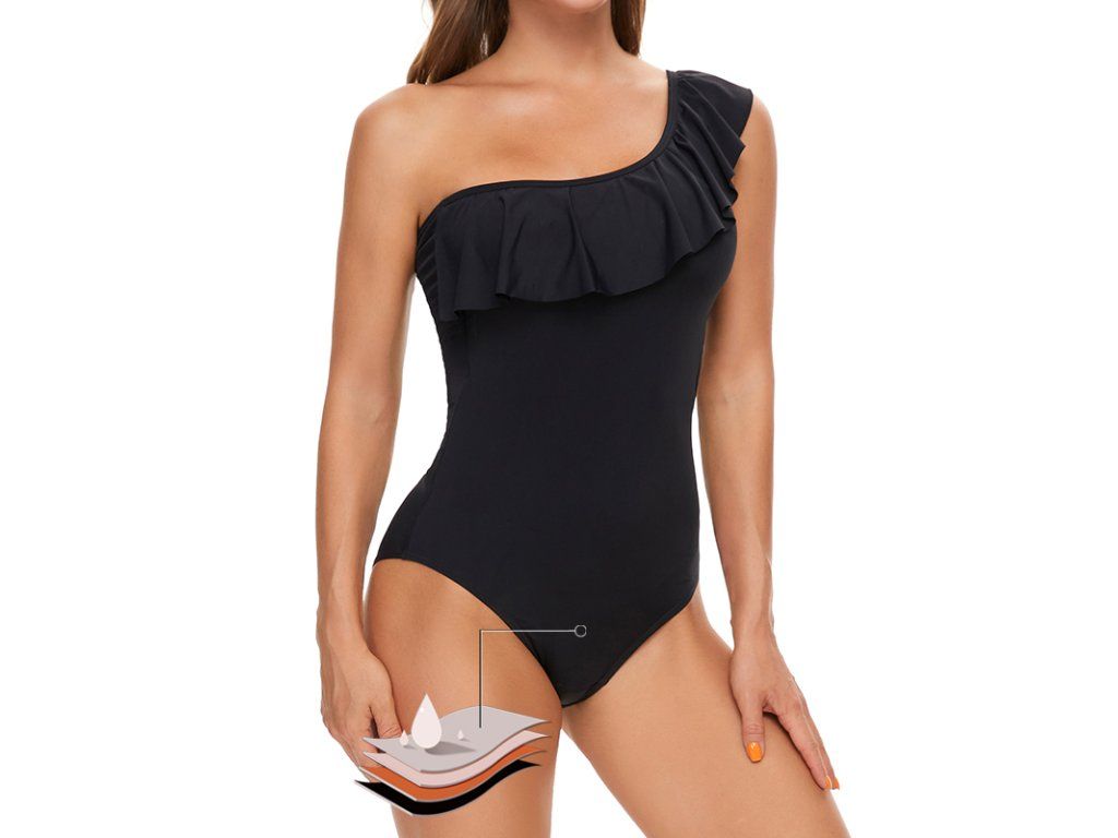 Menštruačné PLAVKY celé 1 ramienko - Čierne