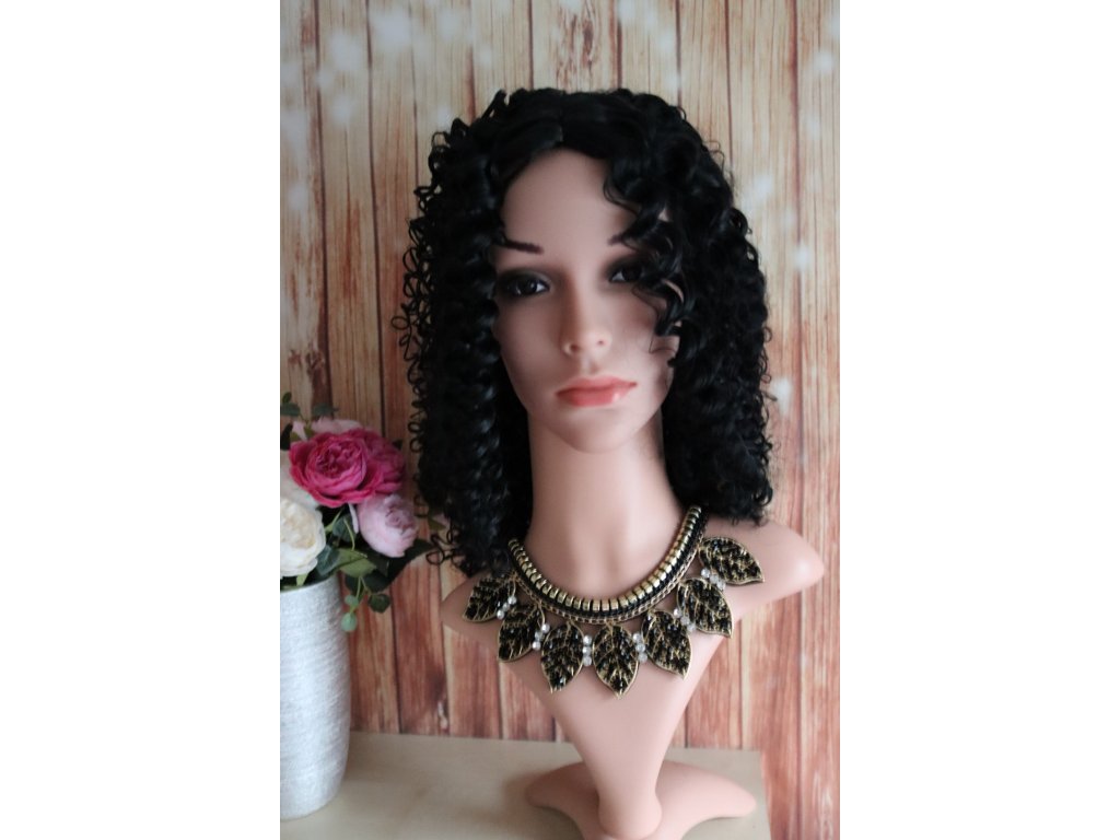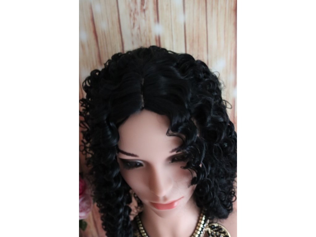 Brenda - polodlhá čierna vlnitá kučeravá parochňa 2021