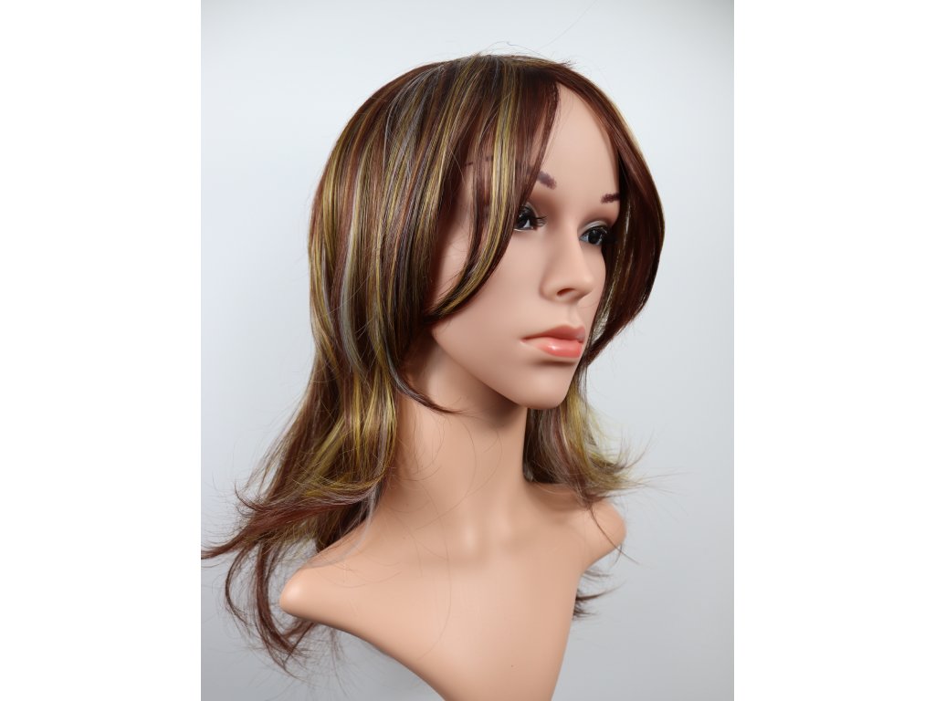 Leona polodlhá hnedá mahagonová parochňa s bielym a žltým melírom