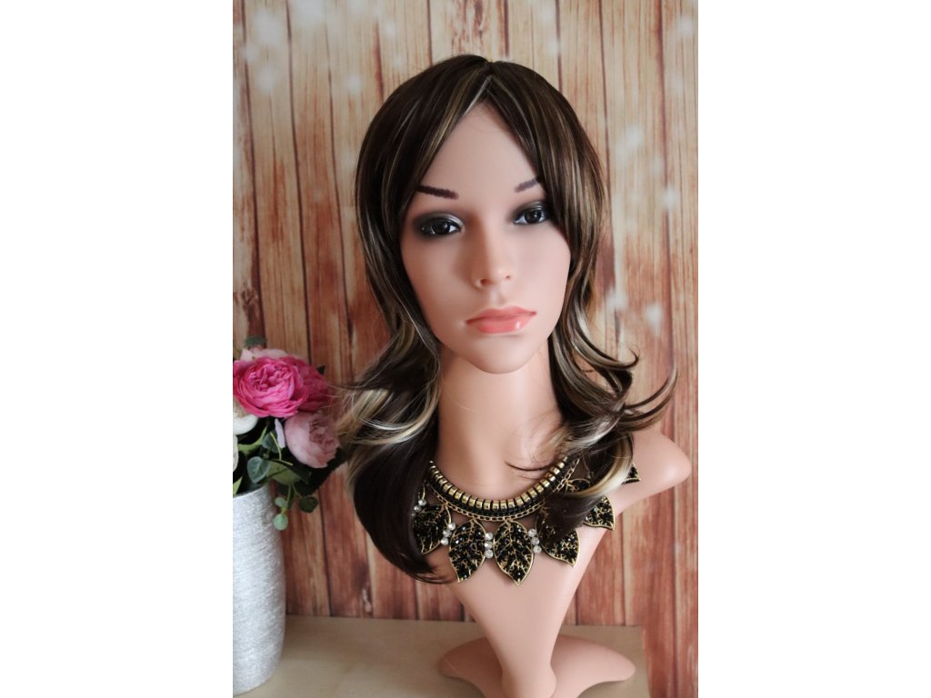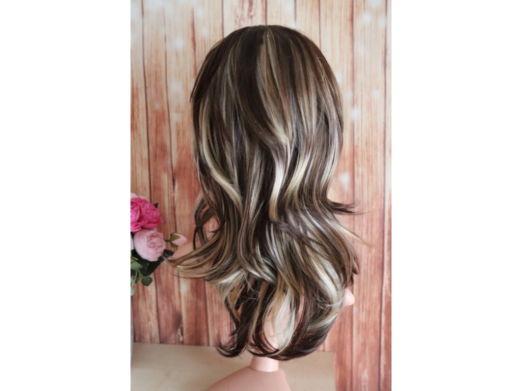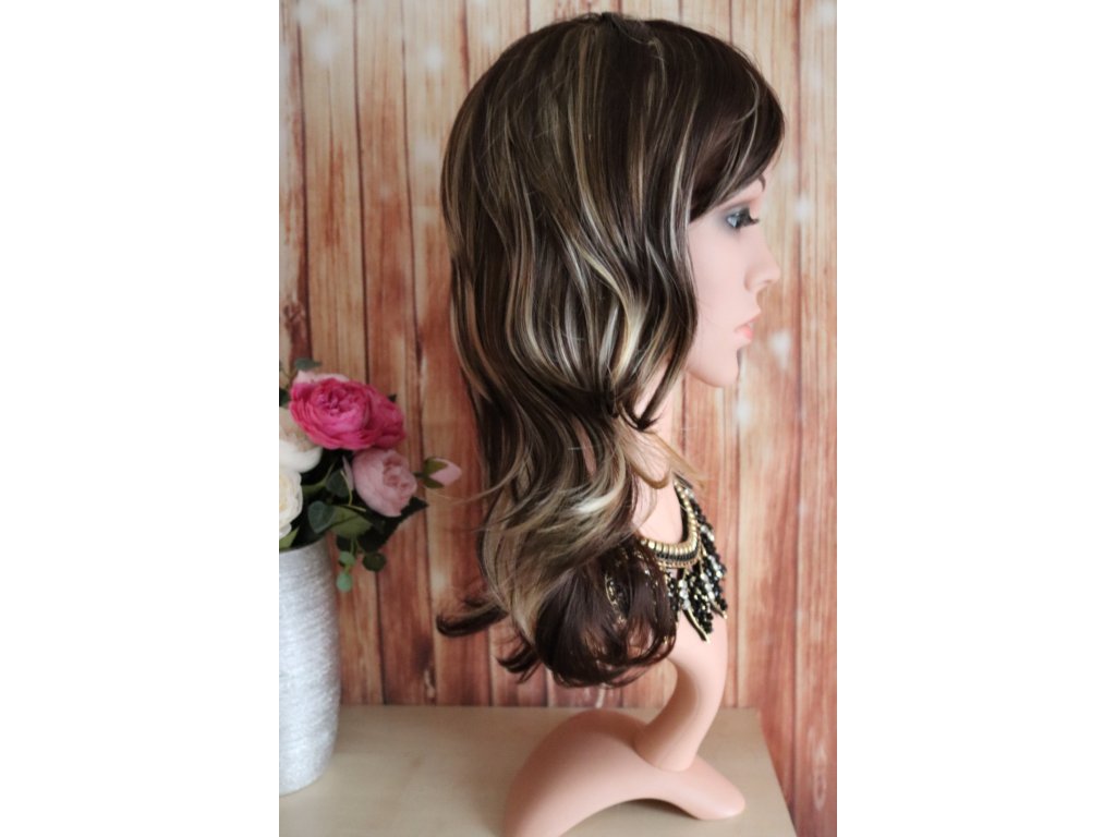 Magda - polodlhá hnedá blond parochňa s melírom
