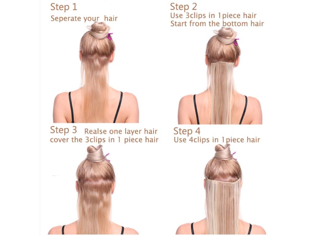 Príčesok má 7 pásov s ,,clipami", vďaka ktorým sa pripne o Vaše vlasy a účes je hotový :-)
